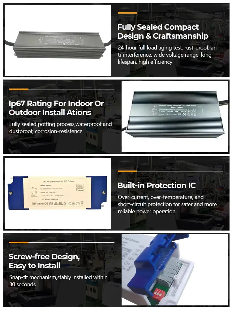 جریان ثابت دقیق · دوام طولانی مدت: درایور ال ای دی تریاک با جریان ثابت STARWELL از تراشه جریان ثابت با دقت بالا استفاده می کند. خطای جریان خروجی ≤ ± 3٪ است، جریان خروجی در 1200 میلی آمپر پایدار است، و عمق سوسو کمتر از 5٪ است، بنابراین مشکلات سوسو زدن و تضعیف نور را از بین می برد. این می تواند عمر مفید وسایل روشنایی LED را تا بیش از 30٪ افزایش دهد و عمر کار مداوم آن می تواند به 50000 ساعت هزینه های تعمیر و نگهداری را کاهش دهد.