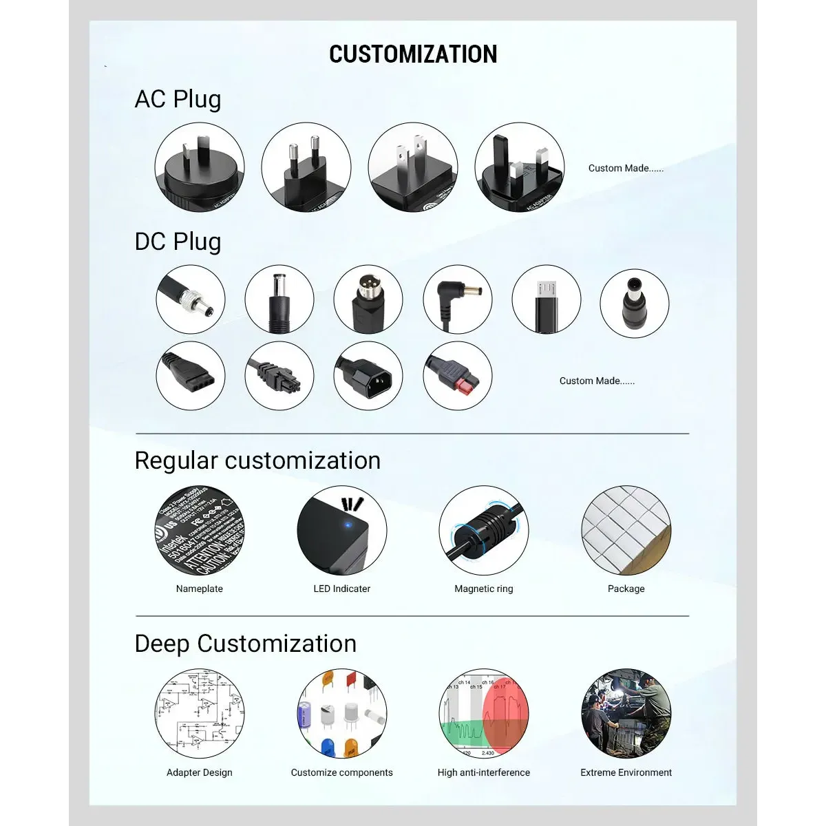 R: ما تولید کننده حرفه ای با 12 سال تجربه در آداپتور AC / DC و منبع تغذیه در شنژن، چین هستیم.