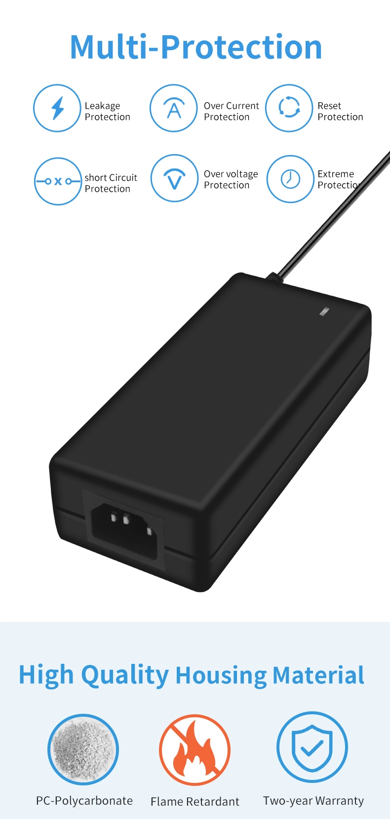 آداپتور برق STARWELL دارای گواهی استانداردهای بین المللی مانند UL/CE/FCC/CCC است و حفاظت 6 لایه (OVP فعال در 15 ولت، OCP در 8.5 آمپر، OTP در 85 درجه سانتیگراد، اتصال کوتاه، ولتاژ و حفاظت ESD) را یکپارچه می کند. محفظه مقاوم در برابر شعله PC+ABS به درجه اشتعال پذیری V0 می رسد و در هنگام سوزاندن در دمای 750 درجه سانتیگراد به مدت 30 ثانیه در برابر احتراق مقاومت می کند و خطرات احتمالی ایمنی را از بین می برد.