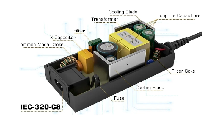 مجهز به طراحی مدار رزونانس LLC، بازده تبدیل تا 92% (تحت بار معمولی)، با مصرف انرژی در حالت آماده به کار به 0.3 وات می رسد که در مقایسه با آداپتورهای استاندارد حدود 7 دلار در هزینه برق سالانه صرفه جویی می کند. در همین حال، دمای عملیاتی آن 8 تا 10 درجه سانتیگراد کمتر از میانگین صنعت است و طول عمر آن را به بیش از 50000 ساعت افزایش می دهد.