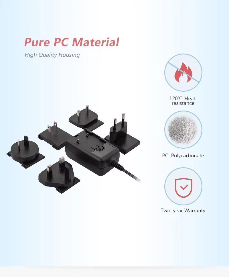 مزیت اصلی محصول جهانی است، شما می توانید آن را به دلخواه تغییر دهید: این منبع تغذیه معمولی نیست! این یک آداپتور برق قابل تعویض 24 واتی منحصر به فرد است که به طور تصادفی به انواع دوشاخه های قابل تعویض مجهز شده است و به شما امکان می دهد به راحتی متصل شوید و آزادانه سفر کنید، چه در خانه، چه در دفتر و چه در سفرهای کاری در سراسر جهان.