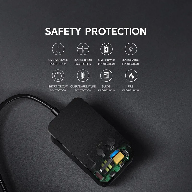 حفاظت در برابر دما، شارژ بیش از حد، ولتاژ بیش از حد، جریان بیش از حد، حفاظت از اتصال کوتاه |