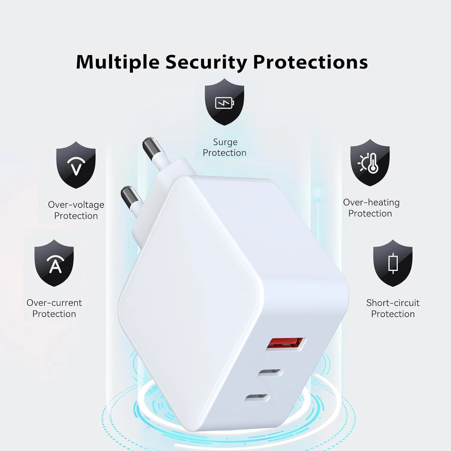 شارژر 65 واتی PD 3.0 فوق نازک 3 پورت UK شارژر سریع شارژر GaN OTP برای خروجی لپ تاپ 2 آمپر |