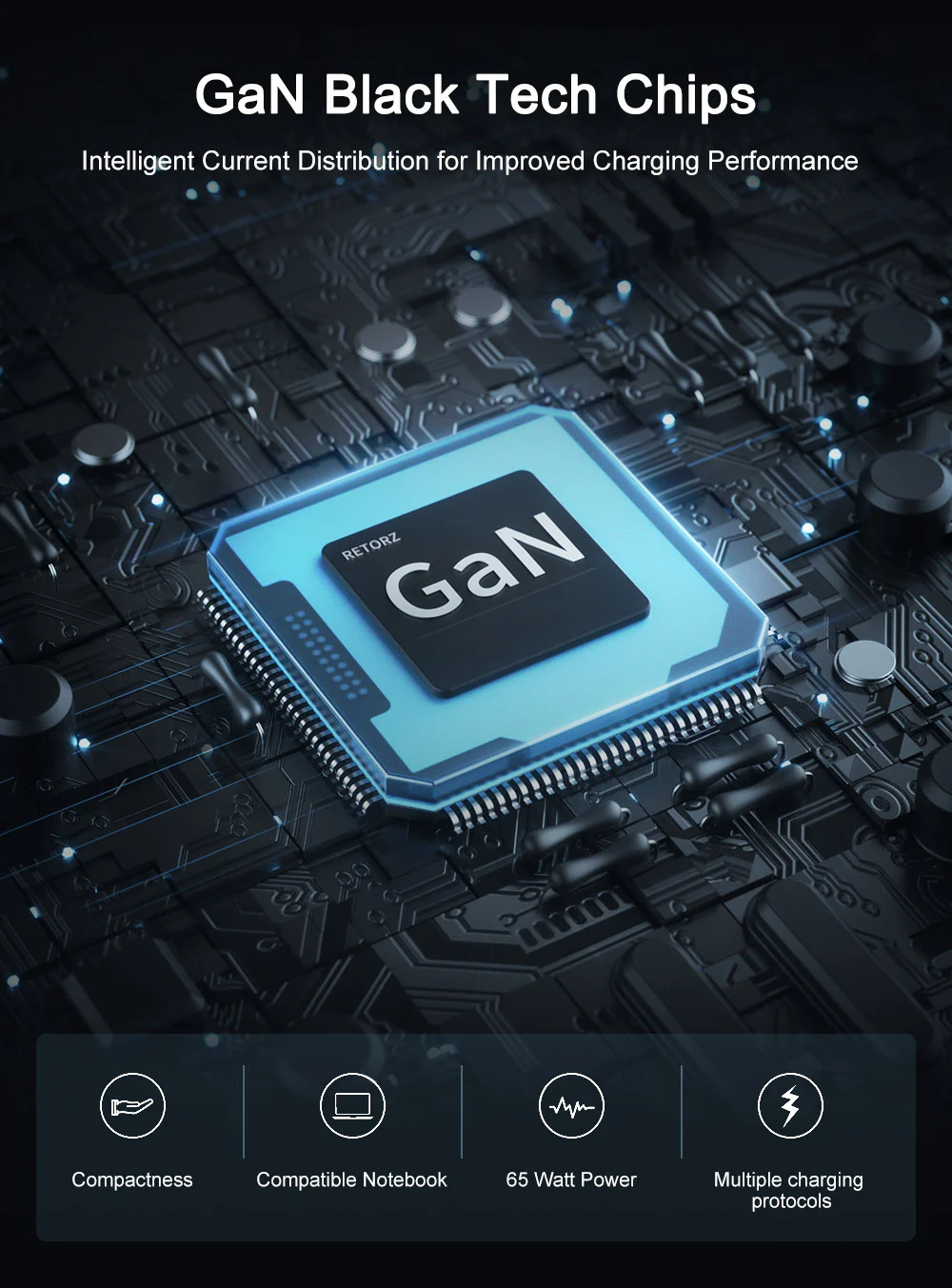 - شارژ سریع: خروجی 65 وات زمان شارژ را کاهش می دهد و دستگاه های شما را به سرعت شارژ می کند.